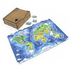Деревянный пазл для малышей "Карта мира - материки и океаны" в подарочной коробке - это хороший и интересный игровой способ изучения нашей планеты Земля. Ваш ребенок и Вы получите удовольствие от сборки этого яркого пазла - карты. По мнению экспертов, такие головоломки для детей - это не просто развлечение, а важное средство обучения, которое помогает общему развитию ребенка. Плюсом является изучение территории планеты, морей океанов и их жителей. Набор деревянных пазлов - это лучший инструмент для обучения! Ребенок получает навыки сортировки и мелкой моторики, тренирует упорство, терпение, внимание и сосредоточенность, усидчивость. Он поможет развить логическое мышление и фантазию, знание Мира.  Что немаловажно, пазлы антистресс из дерева полностью экологичный. Легкий в сборке, увлекательный процесс мальчикам и девочкам. Изображение нанесено безопасным методом УФ печати. Детская головоломка изготовлена из натурального экологичного материала. Размер: 300 * 200 мм. В наборе 109 деталей.