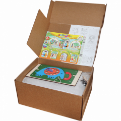 • сортер из 6 разноцветных фигур: круг, треугольник, квадрат, пентагон (правильный пятиугольник), пятиконечная звезда, гексагон (правильный шестиугольник)